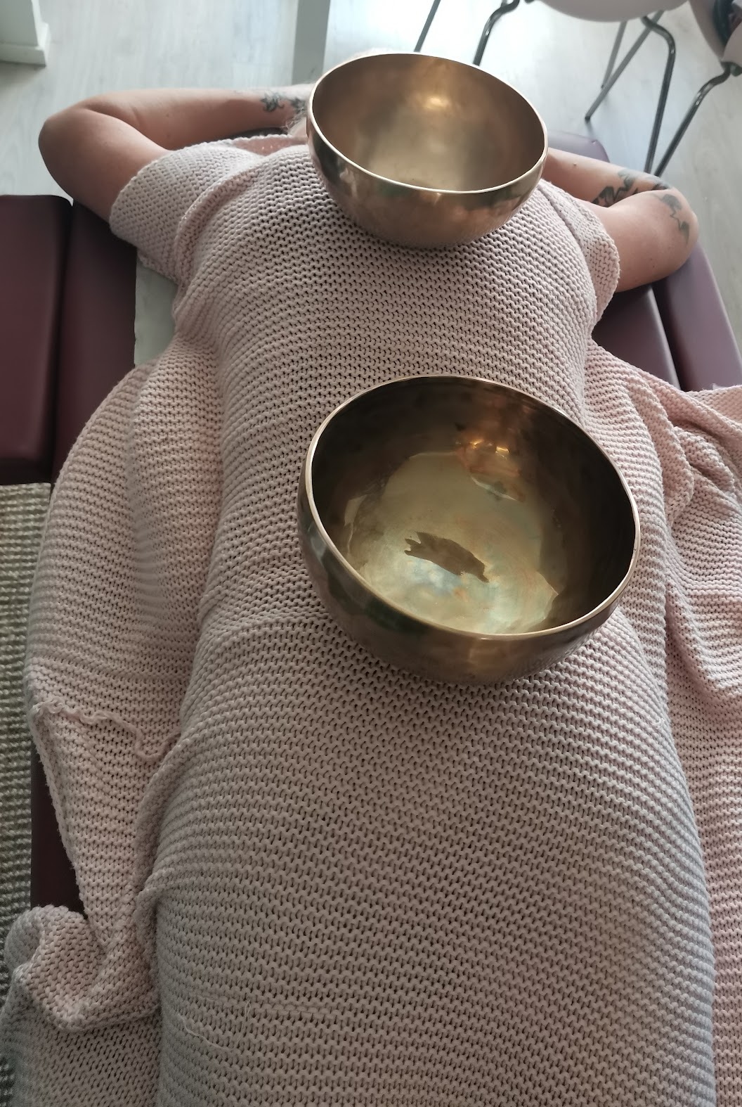 Äänimalja-ja kehonhuoltotunteja yhdistettynä.